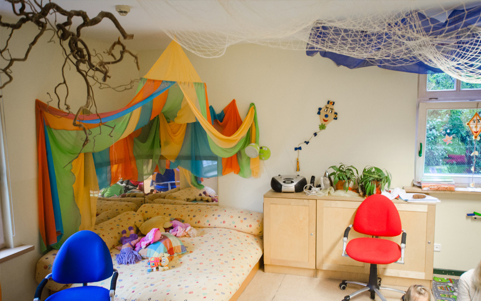 Unser Gruppenraum bietet Platz für Kreis-, Bewegungs- und Fingerspiele, für gemeinsames Singen, Malen und Basteln sowie das eigenständige Entdecken des Umfelds. Regelmäßig kann sich Ihr Kind beim Turnen in der Turnhalle oder im Garten bewegen und nach dem Mittagessen im Schlafraum Ruhe finden.